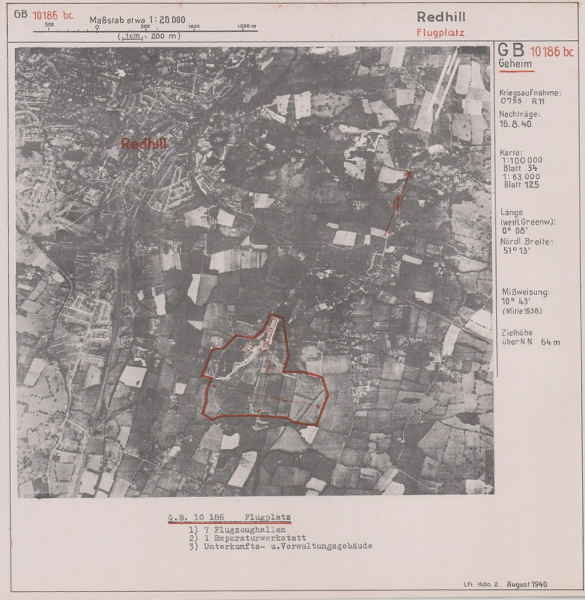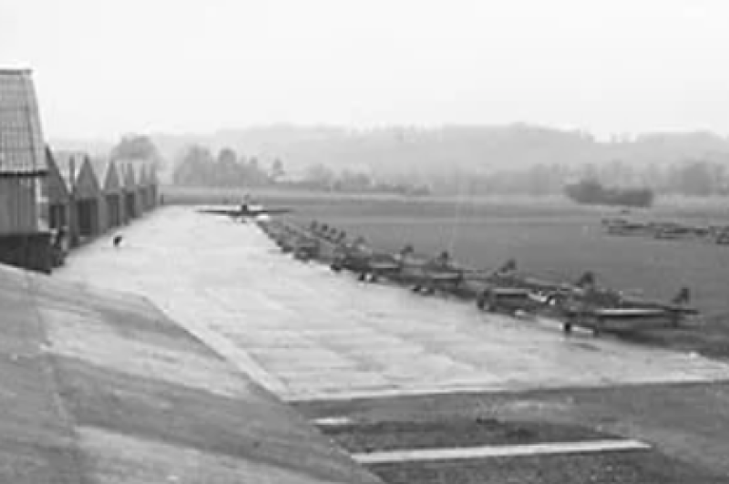 When war finally broke out in September 1939 the Squadrons aircraft were ferried out but returned to resume training at Redhill between 11th September and 6th November 1939. Towards the end of May 1940, the skies over southern England began to darken as aerial activity grew at a steady rate. After the Dunkirk evacuation of the B.E.F. from France and with the threat of a German attack on the airfield the Flying Training School moved to northern England in June 1940. With the withdrawal of the Flying Training School the airfield became an operational RAF station. During the Second World War, Redhill became a fighter base, with Spitfires and Hurricanes stationed at the airfield. It was home to Canadian and Polish squadrons and acted as an advance airfield for the attack on Dieppe in August 1942. First to move in on the 3rd June 1940 were No. 16 (Army Co-operation) Squadron operating the Westland Lysander. The Lysanders did not stay long, and RAF Redhill had many short-term deployments, mainly of fighter squadrons. Redhill remained inactive for much of the Battle of Britain until the arrival of No. 600 Squadron with its Blenheim IVFs and the new radar equipped Beaufighter 600 Sqn. A perimeter track was constructed round the airfield (which remained grass-surfaced) and from this led taxi-tracks to eight Blister hangers and a dozen or so dispersal pens.